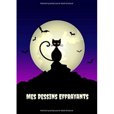 Mes Dessins Effrayants: A4 - Joli Cadeau d’Halloween - 100 Pages de Papier Vierge/ Bloc à Dessin / Bloc-notes Créatif / Bloc-notes/ Chat noir, chauve-souris et lune Details